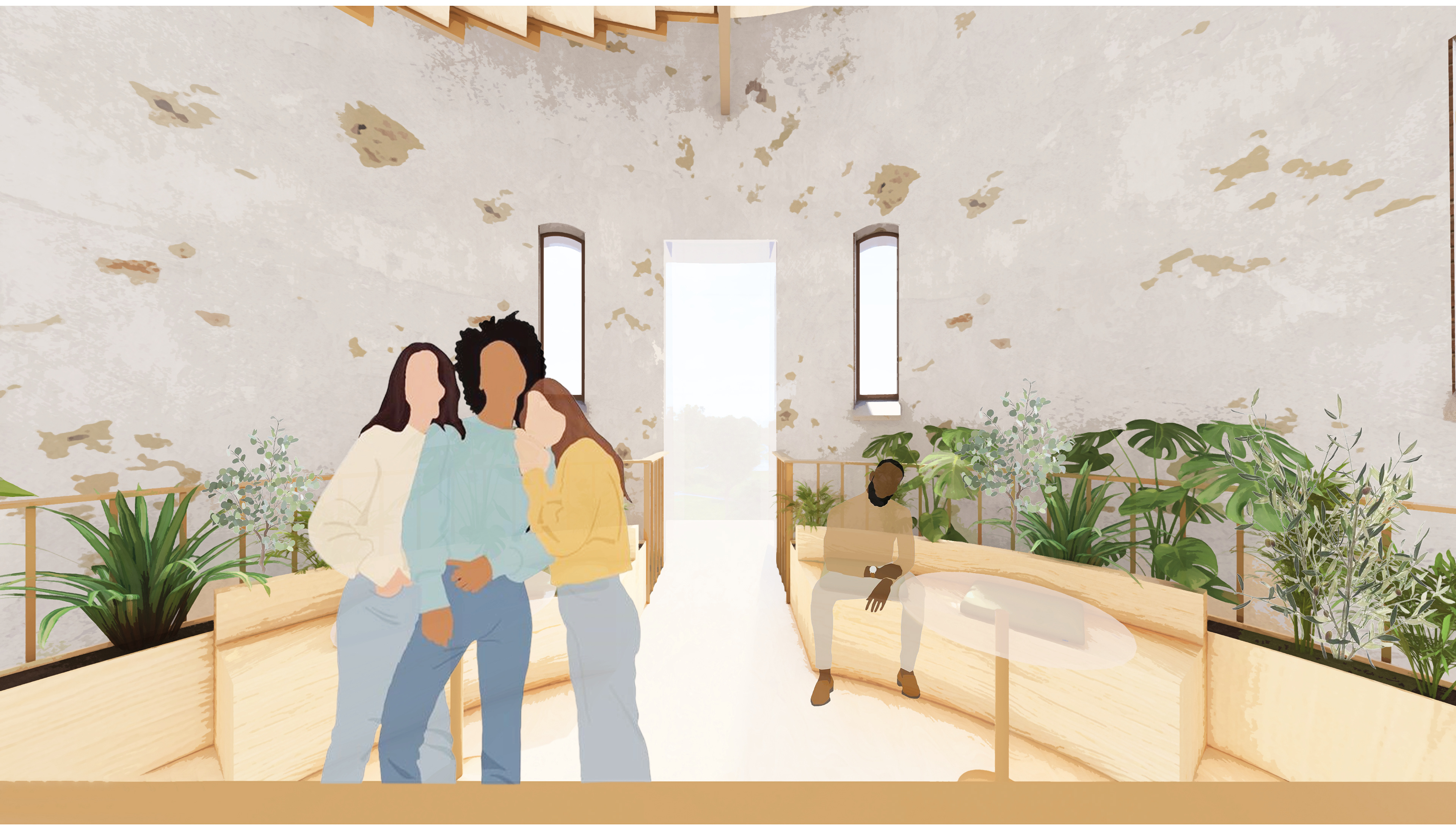 Het interieur van de nieuwe interventie rond de watertoren in Sliedrecht brengt erfgoed en eigentijdse architectuur in balans. De ruwe, monumentale toren blijft zichtbaar en voelbaar, terwijl de nieuwbouw met haar zachte houten structuur en royale glasvlakken een warme, open sfeer creëert. Een sculpturale trap slingert zich door de toren en verbindt verschillende verblijfsplekken – elk met een eigen relatie tot licht, uitzicht en gebruik. De gebruiker staat centraal in een ruimtelijke ervaring die uitnodigt tot rust, ontmoeting en verwondering.